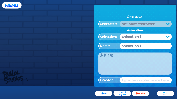 2、进入动画编辑界面后,同样点击New来创建我们的动画新项目,然后在Character选项中选择我们的角色,最后点击右下角的Edit选项。