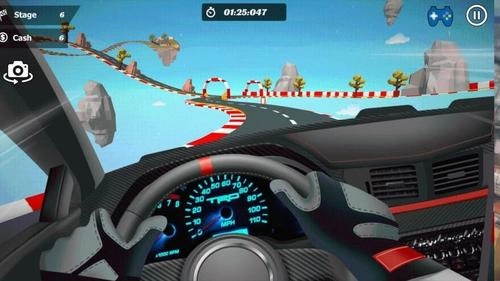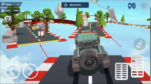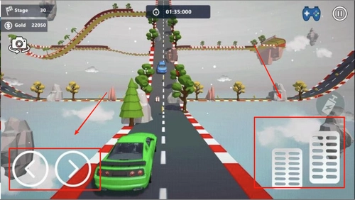 1. 开启游戏后,挑选地图开启挑战,通过虚拟方向盘操控车辆行驶方向,点击加速按钮或者刹车按钮来调节速度,躲避各类障碍。