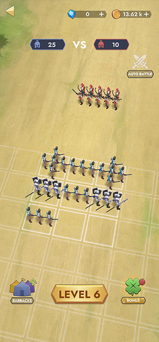 在这个战斗模拟器游戏中,你应该在战场上部署你的士兵来对抗敌人的小军队。根据你的战斗军团的能力、敌人的军队和地图条件做出明智的决定。兵法远比你想象的要难!