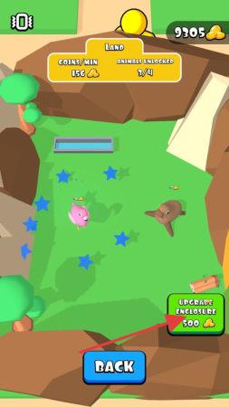 3、在“Land”场景,点击“LEVELUPENCLOSURE”升级围栏,提升动物养殖环境,增加收益。