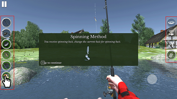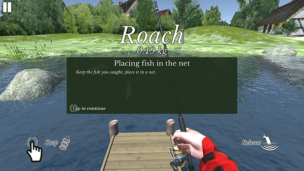 1、在这里你将学习如何玩,如何用漂浮和旋转的方法捕鱼。