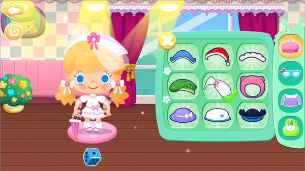 8、在卧室中点击糖糖,即可为她选择并换上你心仪的服装。