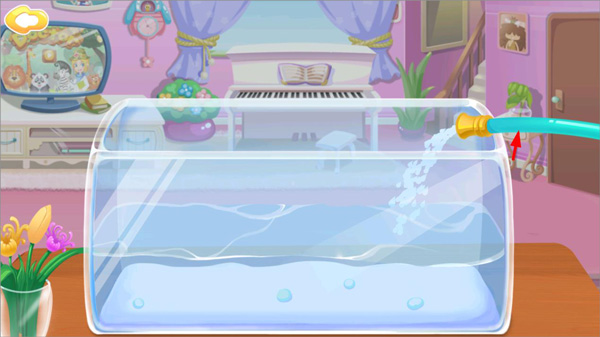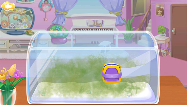 5、接下来陪哥哥玩一局钓鱼游戏,鱼缸看起来很久没清理了,赶紧用刷子把它刷干净吧,这样小鱼也能有个舒适的家了。