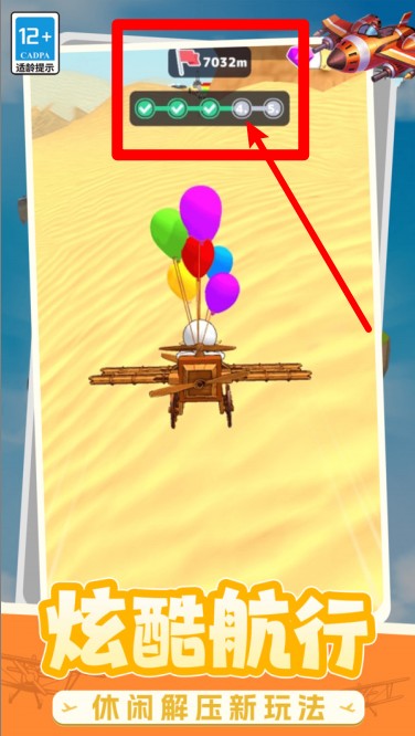 1. 飞行进度展示:在画面顶部显示当前飞行距离和进度条,每当完成一个阶段时,相应的标志会亮起以表示飞行目标的推进。