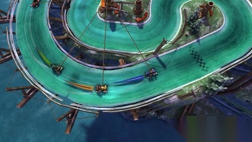 2、创新操作机制:使用抓住钩子作为弹弓在角落快速过弯,在步调快速的arcade样式竞赛中,通过这种创新操作机制实现刺激的弯道超越,考验玩家的操作技巧和反应能力。