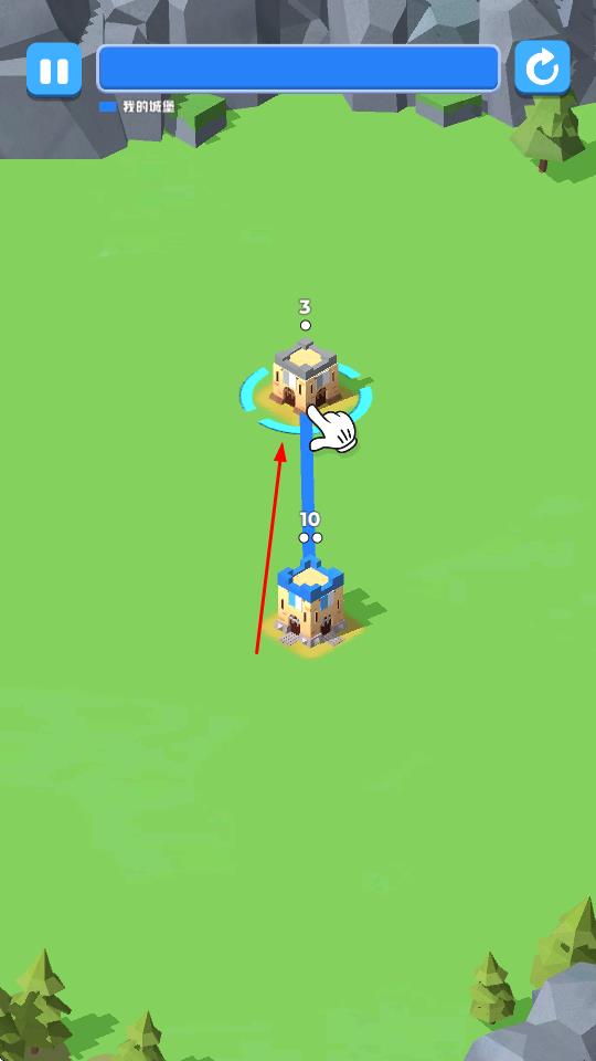 1、点击自己的城堡(带有数字兵力),拖动连接到目标城堡,传送兵力,以增强据点的战斗力。