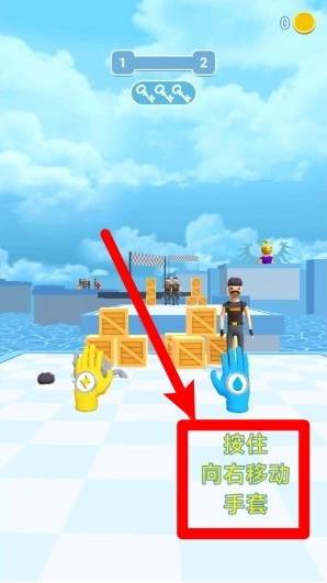 3. 长按屏幕并向左滑动蓝手套,同时依据左右手的位置进行相应调整,如此便能巧妙避开机关,顺利完成这一高难度操作。