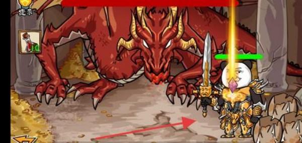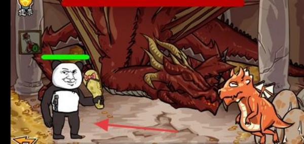 2、战斗操作:操控熊猫角色(持剑/拖鞋),攻击红色巨龙。