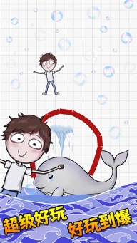 2、进入第一关,这关很简单,从人物的头上画一条毛线即可,