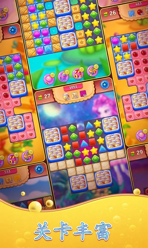 3、借助糖果炸弹、彩虹糖果等多种道具,能助力你更高效地完成任务。