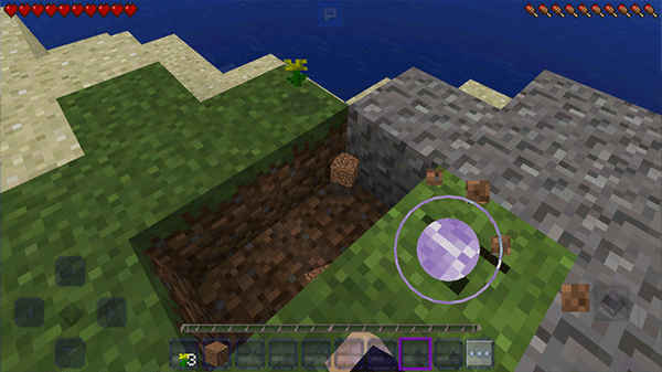5、长按并点击某个位置,便能执行拾取或挖掘操作,挖掘所得物品会显示在下方。