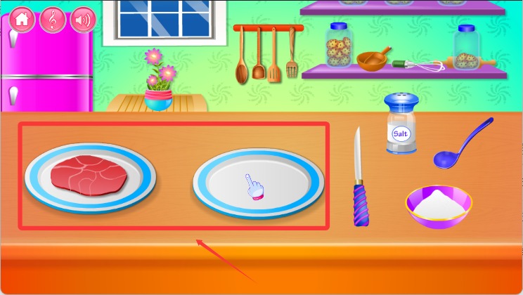 1、进入厨房后先挑选菜单,如制作春卷、煎饼或蛋糕等,每道菜品均有流程提示,引导玩家逐步操作,直观易懂。