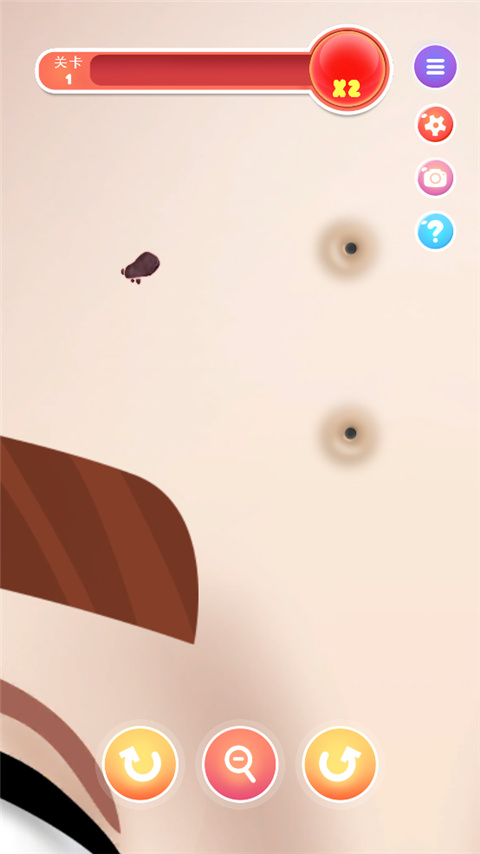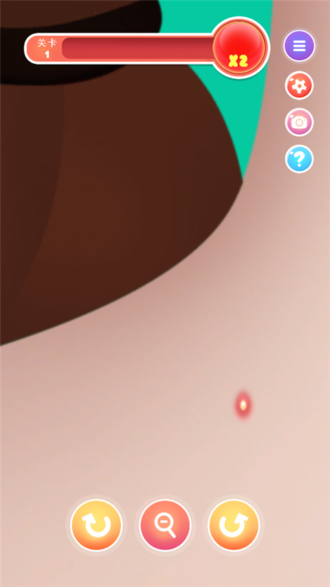 游戏玩法极为简单,丰富多样的关卡。玩家只需找出人物角色脸上的痘痘、黑头之类,接着像平常挤痘痘那样,用手指在屏幕上滑动,就能去除脓液,清理痘痘。
