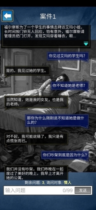 在这起案件里,受害者身着睡衣,死于家中。两名嫌疑人,其一为她的情人,其二是她的学生。鉴于受害者身着睡衣这一情况,推测她极有可能最后会见的人是情人。玩家可依据这些线索,助力自身进行推理。
