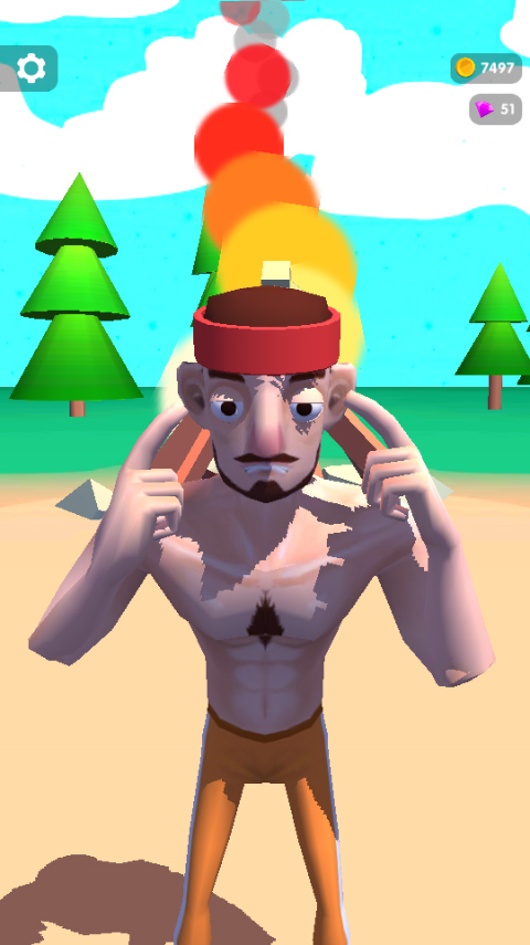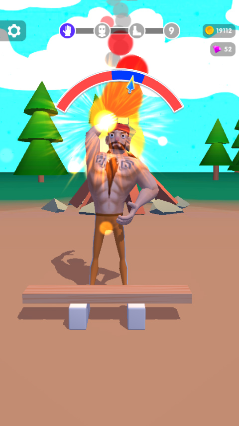 2. 留意这个男人进行蓄力动作,密切注视上方显示的蓄力值,一旦指针移动到蓝色条或者绿色条的位置,马上点击木板。