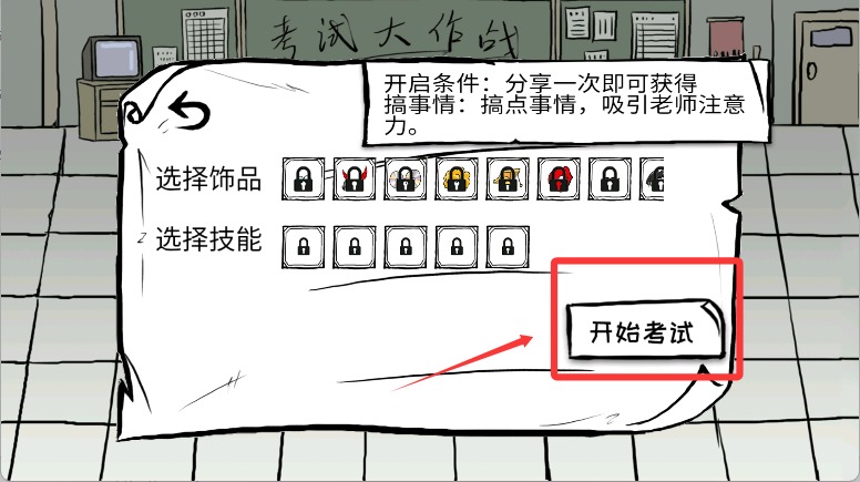 3、最后选择好你要携带的饰品和技能就可以开始考试了。