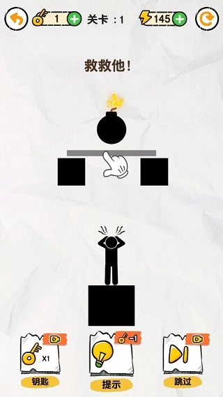 《画线救救火柴人》是一款融合了物理机制与创意思维的益智解谜手游。在游戏里,玩家要依靠“画线”的方式,为火柴人打造逃生通道或者设置防御屏障,从而让火柴人免受各类突发状况的伤害。不管是遭遇导弹袭击、齿轮碰撞,亦或是大锤砸落,你都得在规定时间内开动脑筋,画出最为有效的线条,守护火柴人的安全。该游戏运用极简线条构建出充满趣味的世界,关卡设计别具一格,脑洞大开且极具挑战性。