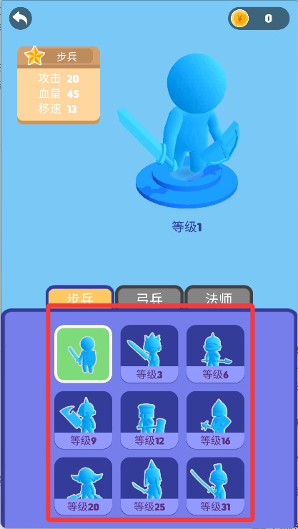 1、进入游戏后首先可以选择我们的士兵的类型。