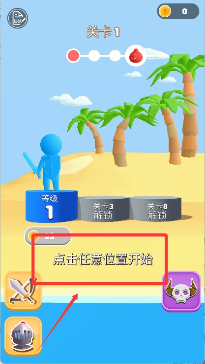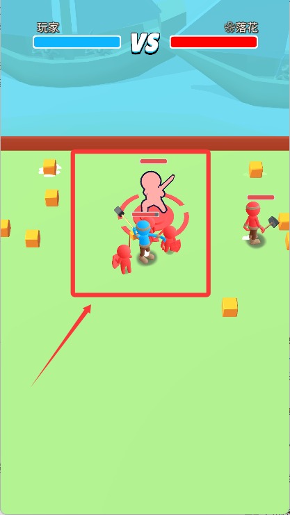 1在矿场里点击挖掘砖块,积累足够的资源后进入战场。通过使用砖块召唤士兵,以“碾压”模式对抗敌军,争取数量上的优势。