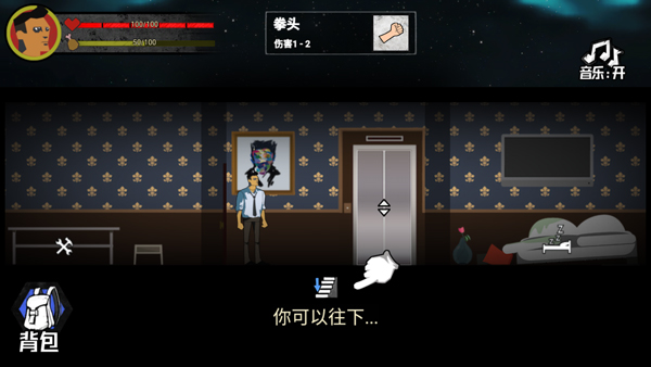在游戏里,玩家将化身一位正在出差的男士。夜幕降临之际,他来到了一家遍布丧尸的酒店。为求生存,你得从100层开始向下探索,手持武器,逐层消灭丧尸,如此才能找到正确的出口,最终成功从这家酒店逃离。