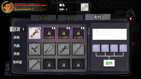 4、药品同样,既能够直接使用,也可制作成其他药品;材料主要用于升级工作台以及制作武器。