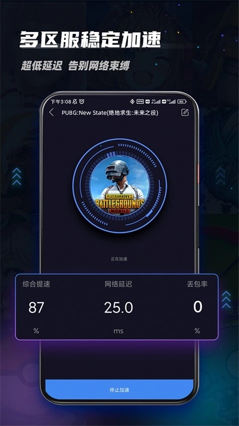 有效降低延迟,根据不同网络条件优化加速方案,降低高强度游戏的延迟。