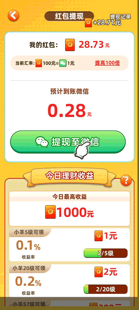 3、每日奖励限领一次,次日可再次领取。收益率超过1%的奖励需同时满足小羊等级和神仙羊数量的要求。