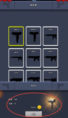 1、在武器库界面中,点击左上角的装备图标,选取任意一把尚未解锁的武器,即可看到所需金币数量,支付相应金币后就能获得新武器。