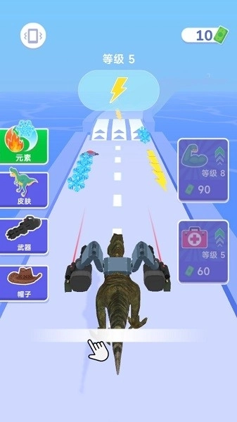 1进入游戏后,通过滑动屏幕来控制恐龙的移动,在前进的过程中收集能量晶体以增强攻击力和生命值,同时要小心躲避地图上的陷阱。