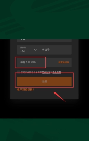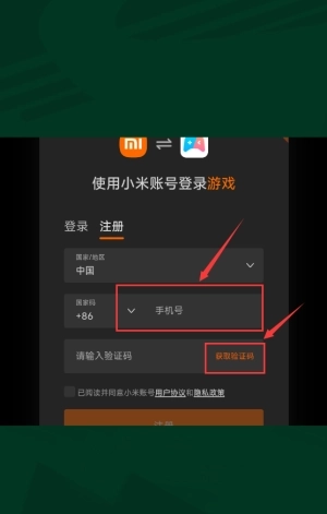 2、输入手机号后,点击红箭头获取验证码按钮。