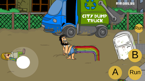 1. 进入游戏角色:打开《流浪汉想睡觉》手机版,玩家便化身为一名流浪汉。游戏界面简洁明了,屏幕左边控制角色移动,右边设有攻击键与奔跑键,简单操作让玩家迅速进入角色,开启流浪生活冒险。