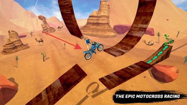 2、参与“EPIC MOTOCROSS RACING”,沿沙漠赛道行驶,过环形坡道等障碍,比拼竞速与特技。