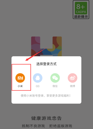 1、点击红框小米图标,使用小米账号登录游戏。