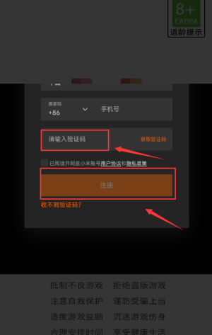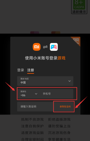 2、输入手机号后,点击红框获取验证码按钮。