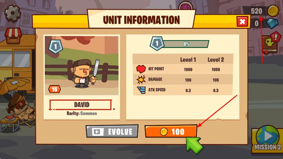 3、战后进入养成界面,消耗金币升级角色,提升血量、伤害、攻速,备战新关卡。