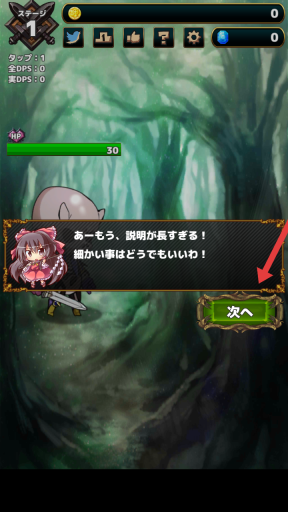 2、遇到角色NPC的对话界面时,操控者需要点击【次へ】按钮跳过冗长说明,快速推进游戏剧情。