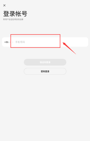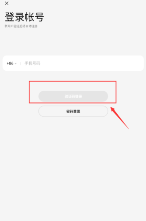 3点击红色箭头的验证码登录按钮,以获取短信验证码。