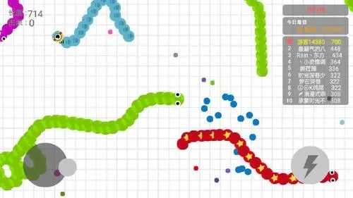 3、通过操作摇杆来掌控小蛇的行进方向,让小蛇吞吃小光点从而不断成长,最终成为世界上最长的蛇蛇!