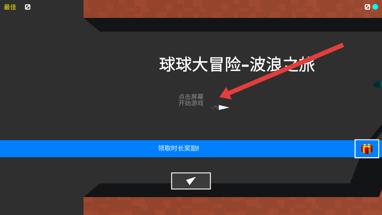 1、在启动界面,点击屏幕空白处,开启球球的波浪冒险之旅(可先领取下方【时长奖励】获取开局福利)。