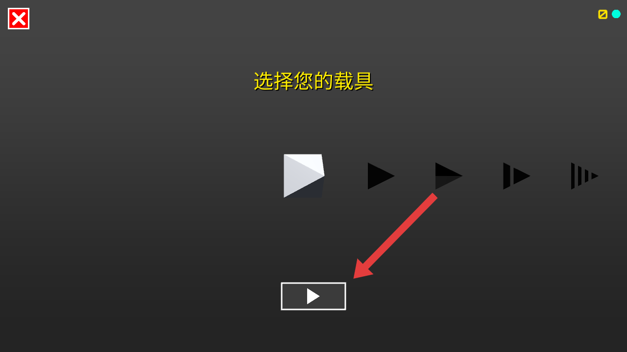 2、在球球大冒险波浪之旅中,进入载具选择界面后,选取你喜欢的几何形状载具,然后点击下方的开始按钮,确认选择并进入游戏关卡。