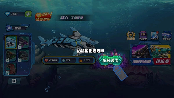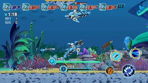 1. 操控机械鲨鱼:玩家能够借助重力感应或者触摸屏幕的方式,对机械鲨鱼的移动与攻击进行操控,从而灵活地应对各类状况。在此过程中,需留意鲨鱼的生命值、加速能量条等重要信息,合理运用道具以及攻击手段,以此维持它的存活状态。