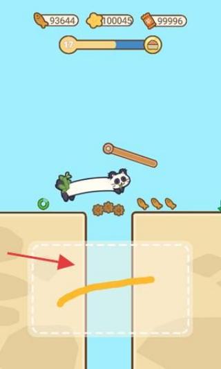 1、绘制路径:在虚线框内画线条,为动物(熊猫、长虫、猫等)搭建跨越障碍的通道。