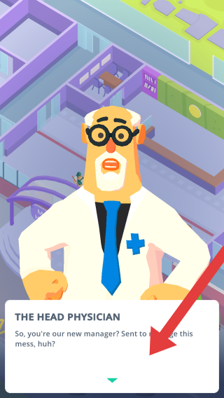 1图中展示了首席医师的角色,其中有一段对话:“所以,你就是我们的新经理?是来解决这个乱局的吗?” 这个场景描绘了游戏开局或新经理上任时的互动情况。这是一款模拟经营医院的游戏,玩家将扮演经理来管理医院。
