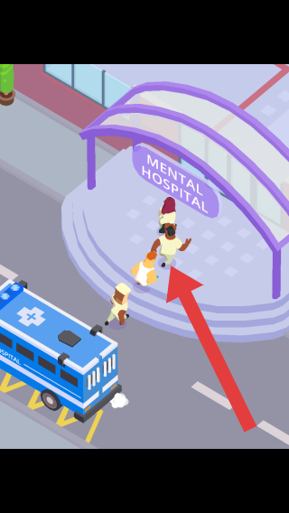 2、展示的是“MENTAL HOSPITAL(精神病院)”场景,包含医护人员引导患者入院、救护车等元素。这是一款模拟经营精神病院的游戏,玩家可以体验医院的运营管理。