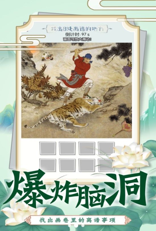 找茬脑洞的世界游戏,是一款趣味性十足的解谜休闲佳作。其游戏背景与场景丰富多样,主题和元素精彩纷呈,涵盖恐龙时代、未来空间站、神秘沙漠等。这些元素的持续变换,为游戏设定注入了源源不断的新鲜感。在细节方面,游戏还巧妙融入众多搞笑且有趣的内容,像小动物捣乱、人物互动之类,让玩家充分领略到游戏的独特乐趣。