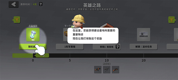 2、进入大厅之后,我们首先要查看英雄之路,在这里你能获取建设基地所需要的物质;