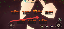 2、遇到多平台场景,跳跃至箭头指向的平台,追击敌人,注意场景中的陷阱(如火焰),保持生存。