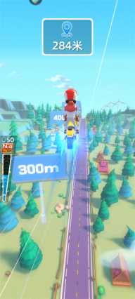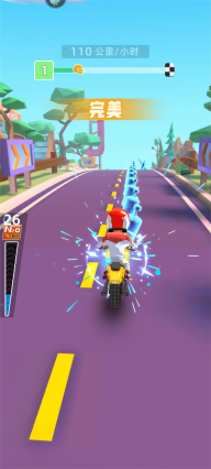 1、我们得通过左右移动来操控摩托车,使其触碰马路上的加油瓶,进而增加能量。