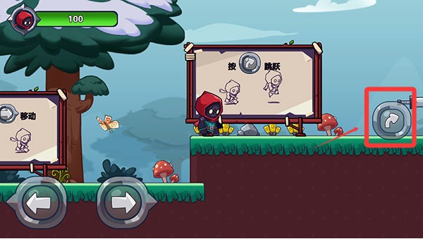 2、右边的靠中间的按钮是跳跃键,能够跳跃一层位置,不能二级跳跃。