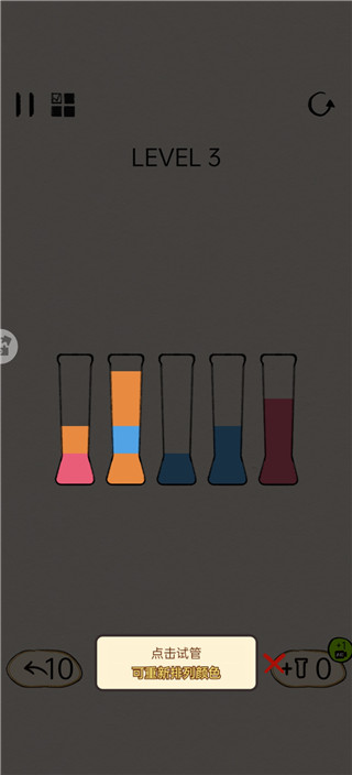 玩家需要将所有的液体按照关卡要求排列好即算通关,通关可以获得大量金币奖励